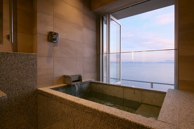 ロビー・客室・露天風呂からは、瀬戸内の穏やかな海を一望していただけます。