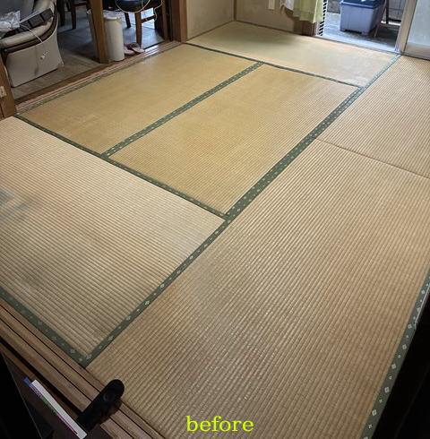 6帖間(既存は1帖物)のお部屋の畳を縁なし半帖畳12枚へ新調されました。